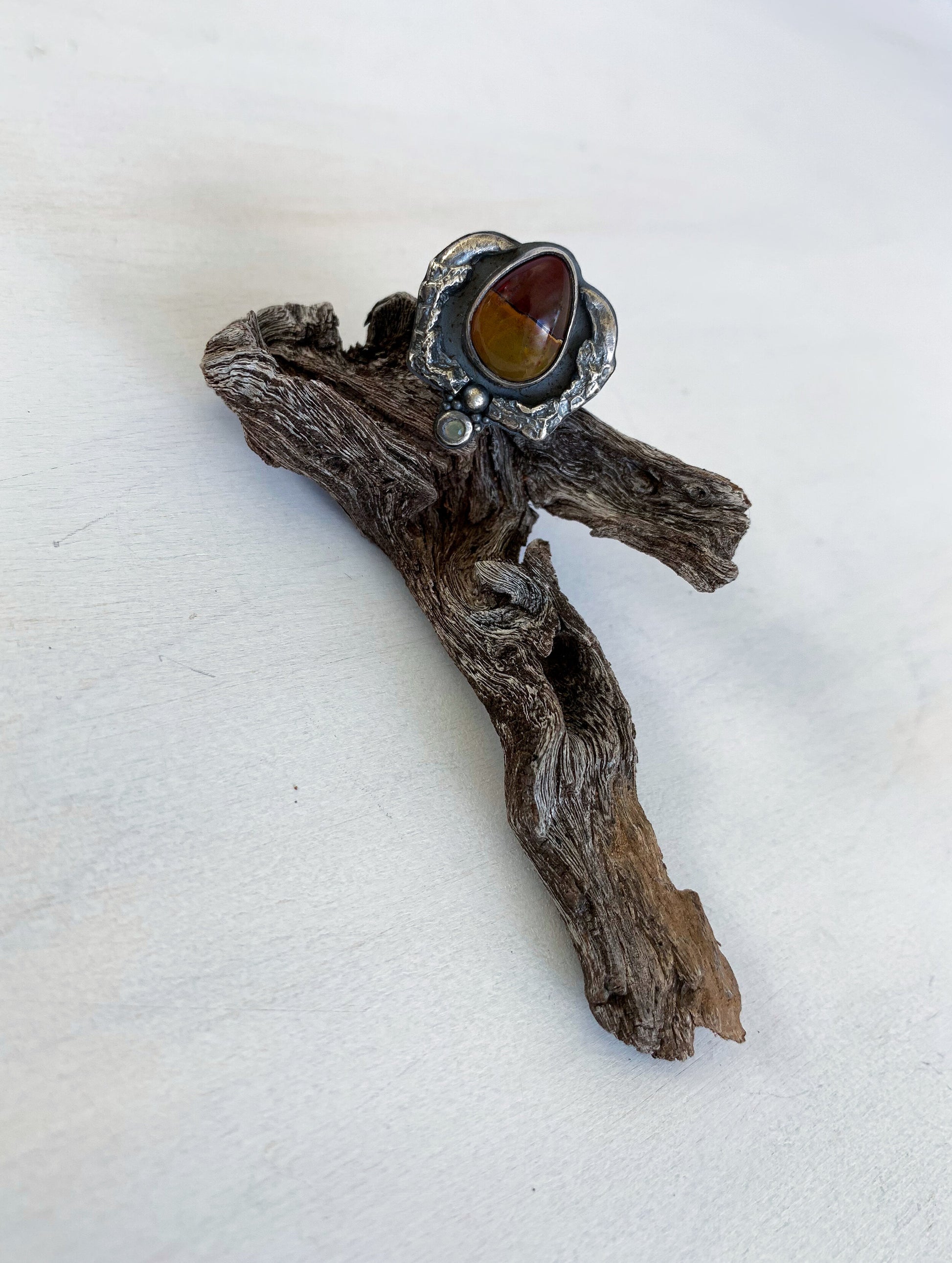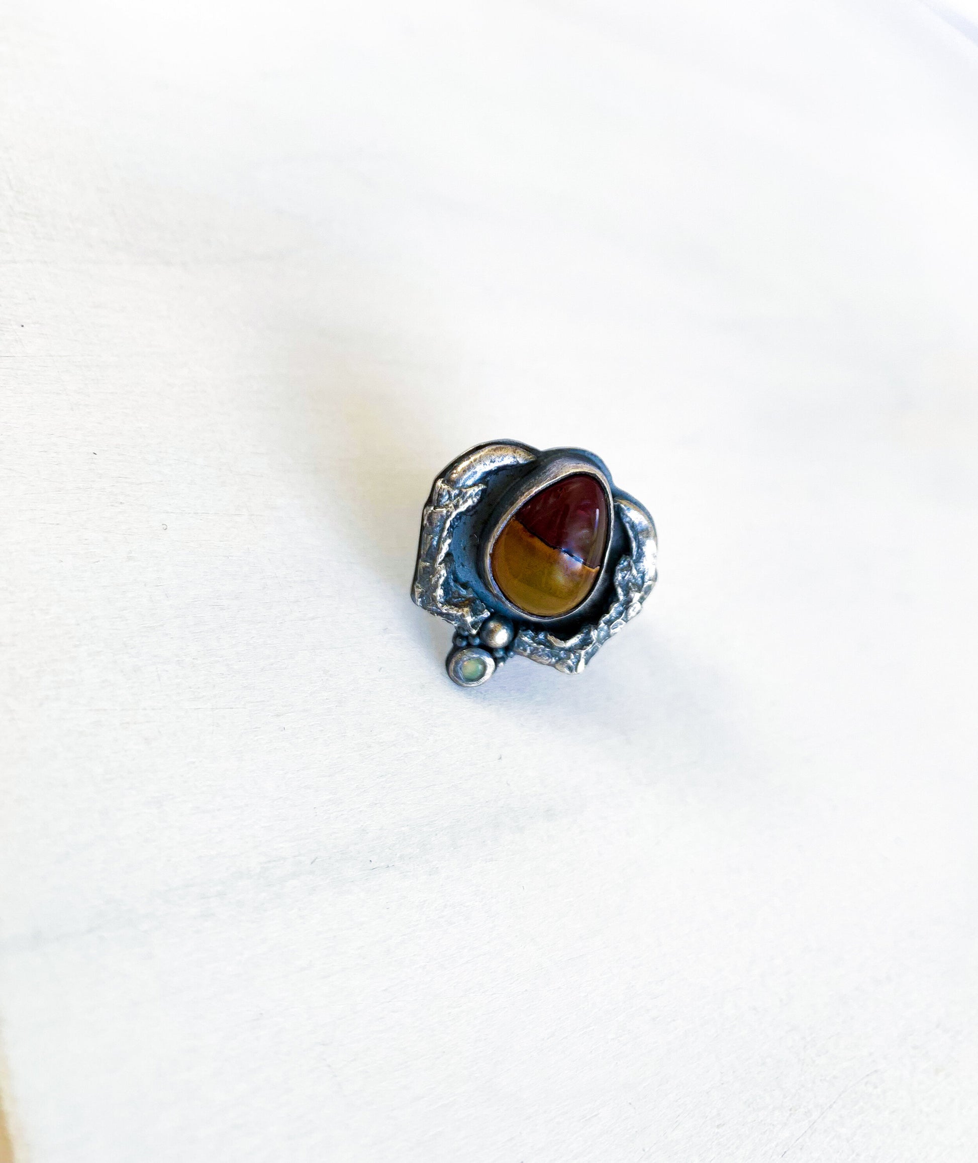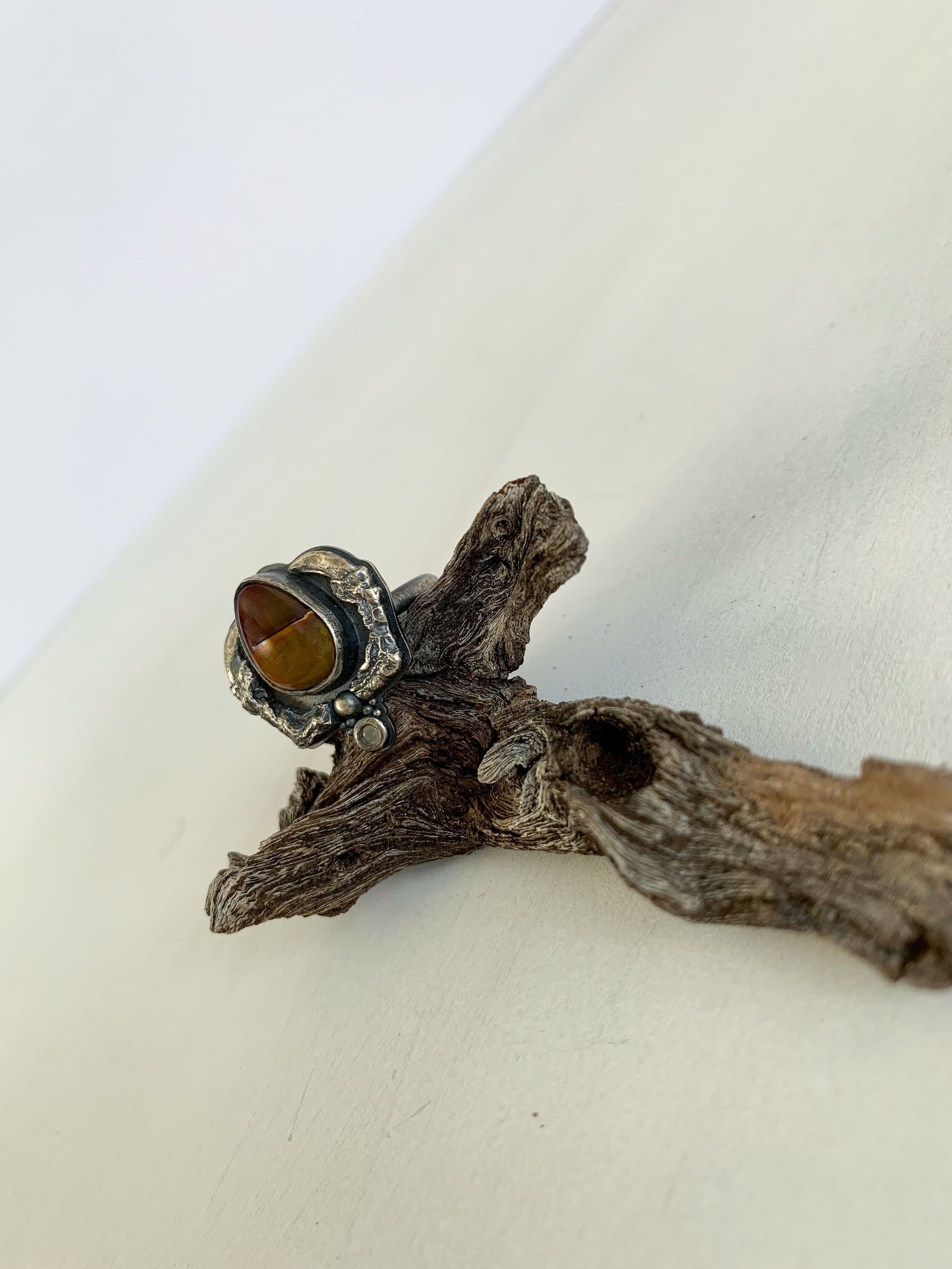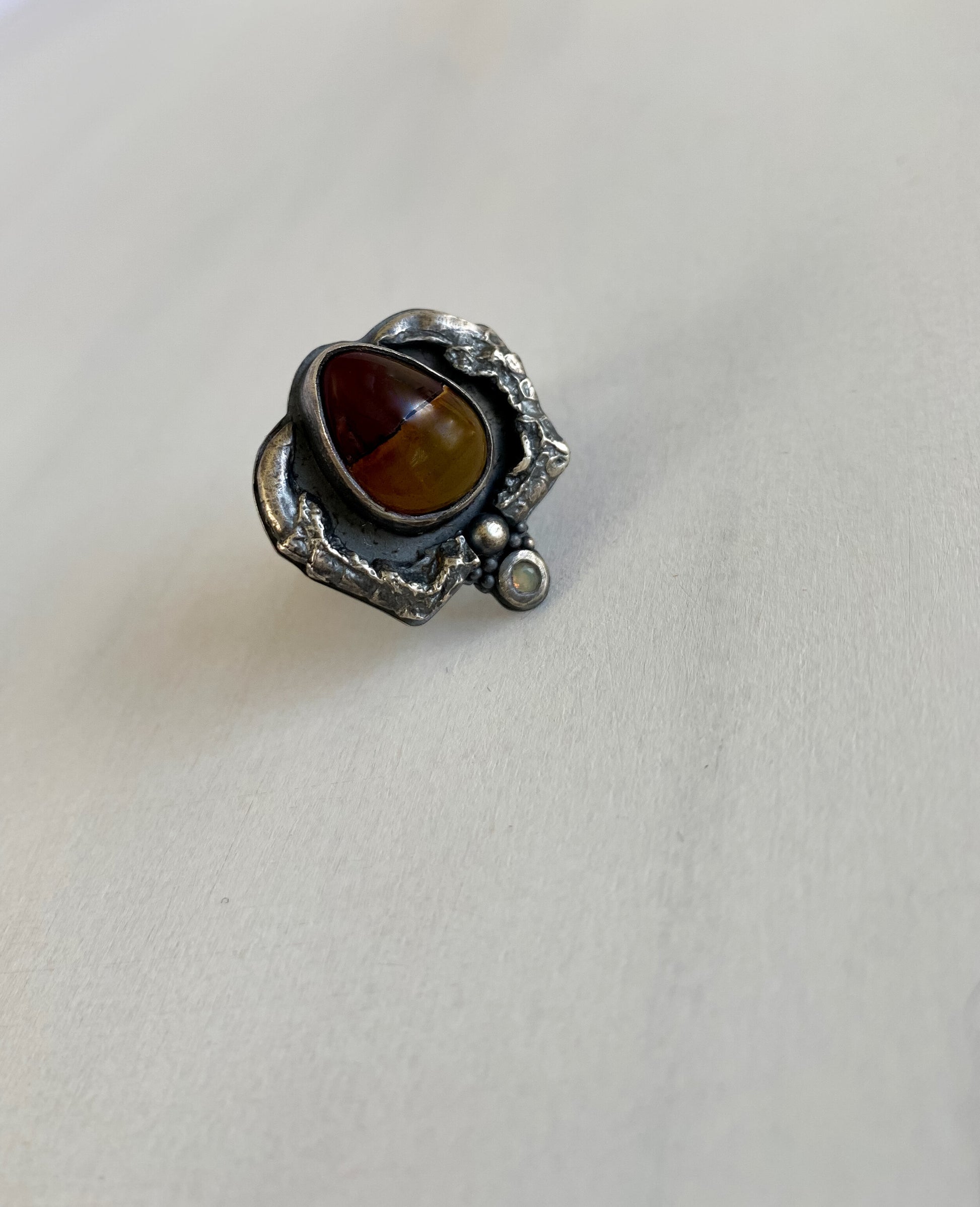 This Pigeon Claw was cast using a genuine pigeon claw (humanely sourced). The ring is Agrentium Silver (.935 and hypoallergenic) and features Jasper and Ethiopian Opal. It is light weight and great for everyday wear or just a bit of a statement!