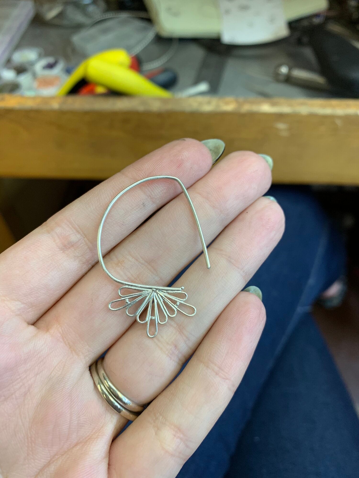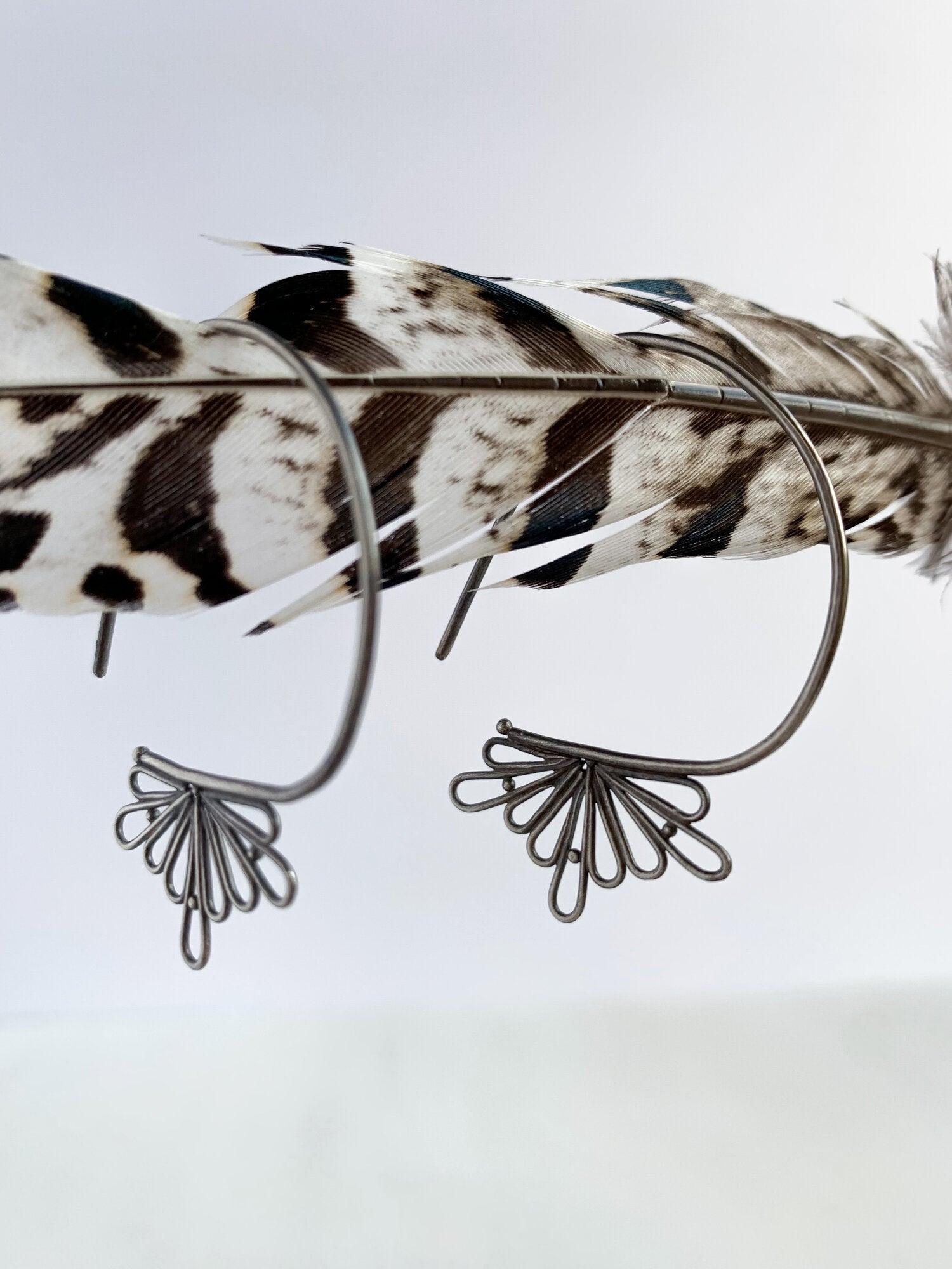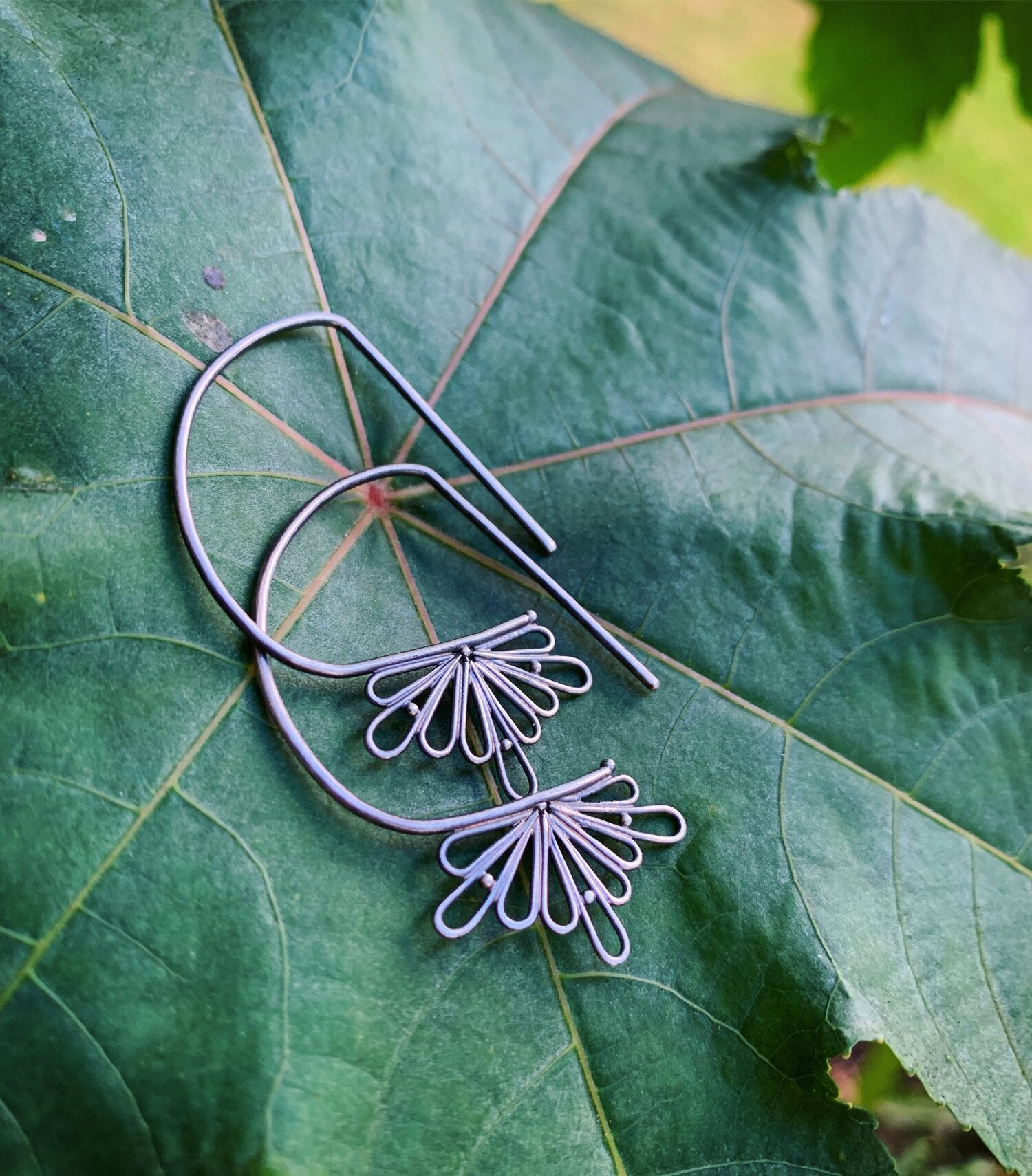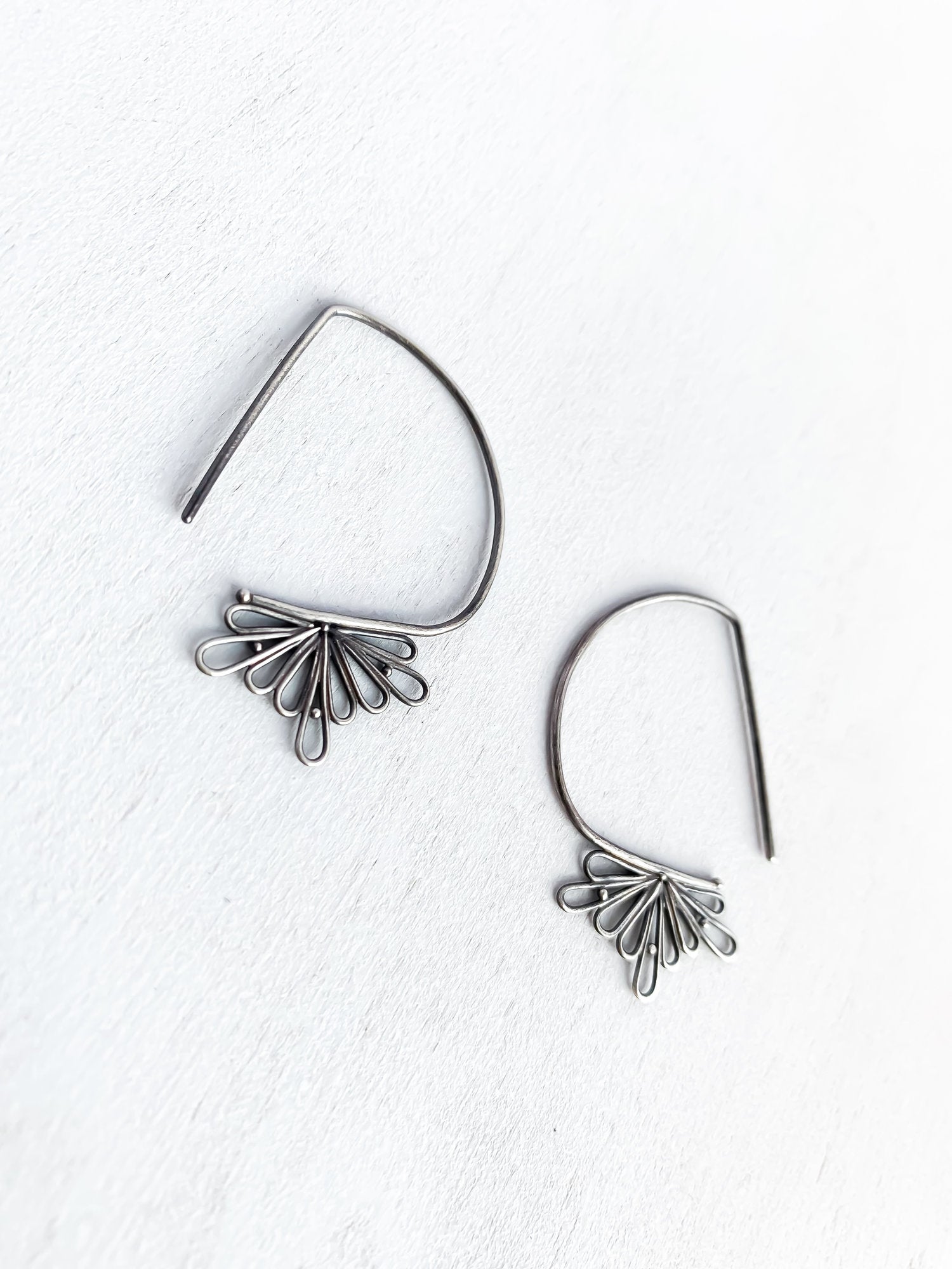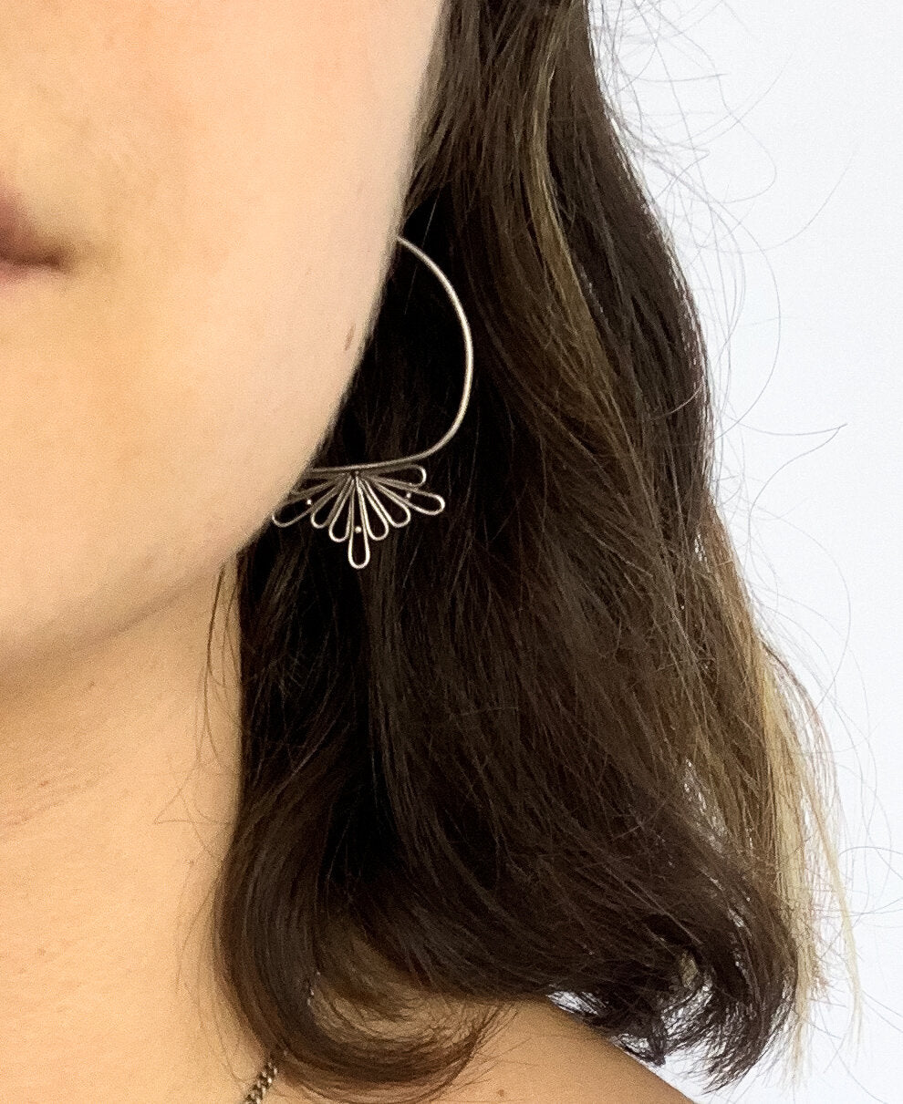 Petal Crown wire-work earrings are lightweight, perfect for everyday wear! Crafted from Argentium Silver (.925 & hypoallergenic), they come in a !8 or 20 gauge pair. You can choose between a matte silver finish or a dark antiqued finish depending on your vibe!